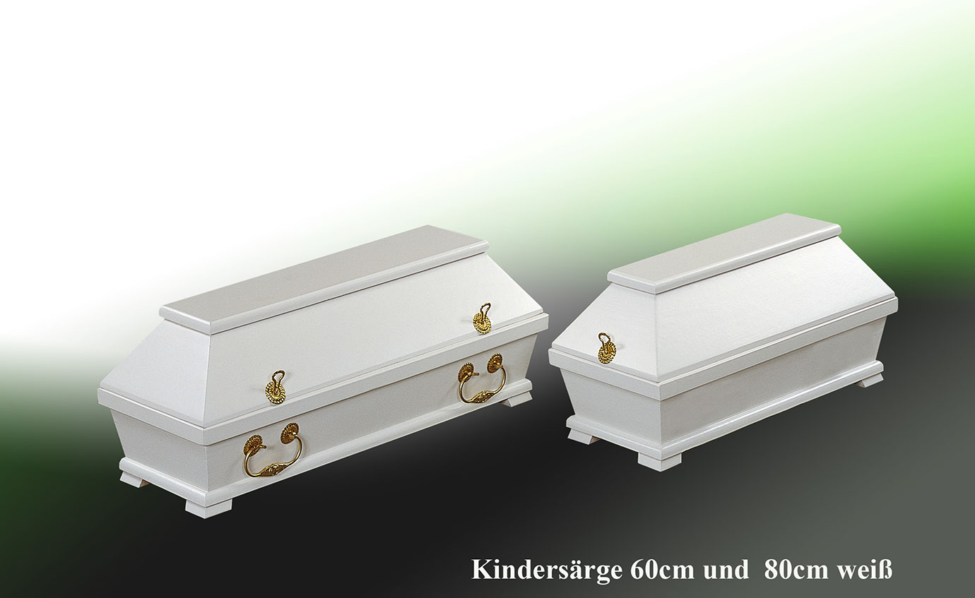 Kindersärge sind in weiß, als Kreativ-Modell und auf Wunsch auch in anderen Farben kurzfristig lieferbar.